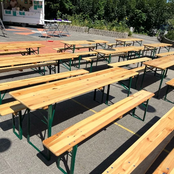 | Tips | Totaal 24 biertafels en 48 bierbanken op voorraad |