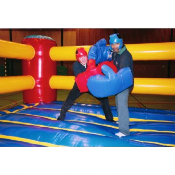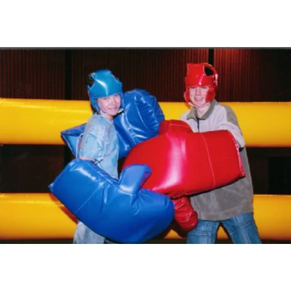 Deze boksring is voor deelnemers die tegen een stootje kunnen. Met reuze bokshandschoenen aan en een veiligheidshelm op kan je op een komische manier een partijtje boksen.