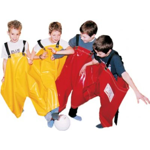 Probeer met 2 persoonen tegelijkertijd in deze duo broeken een parcours afteleggen.