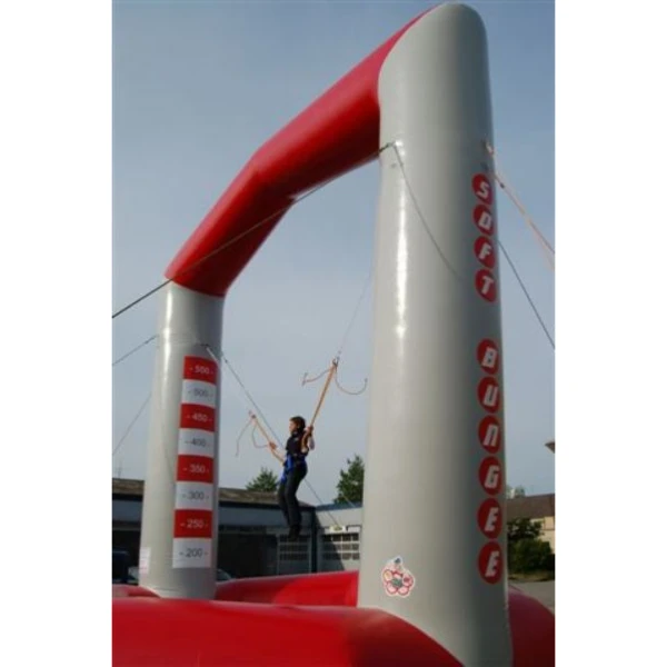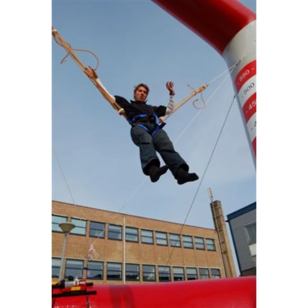 Deze Bungee Trampoline is een top attractie voor sportieve deelnemers! De springers zitten veilig met een veiligheidsgordel vast aan elastieken, door het springen op een speciale opblaasbare trampoline en de veerkracht van de elastiken kunnen er op deze Soft Bungee enorme hoge sprongen en spectaculaire salto's gemaakt worden, succes gegarandeerd!