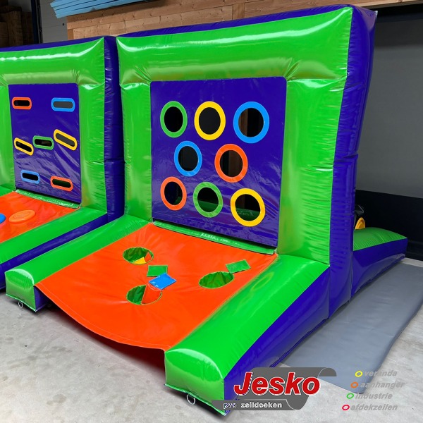 Cornhole, Pittenzak Werpen party xxl spel is weer een nieuwe leuke en uitdagende opblaasbare party spel! Je kan het op veel verschillende manieren spelen, bepaal zelf de spelregels afhankelijk van het soort activiteit. Het spel is voor elke leeftijd, probeer met een de gekleurde pittenzaken van een bepaalde afstand en met de juiste snelheid door de opening met de juiste kleur te gooien. Gooi jij alle gekeurde pittenzakjes in de juiste opening met de juiste kleur dan heb je het maximale aantal punten behaald. Scoor jij de meeste punten tijdens jullie event. Of het nu gaat om kinderfeestjes, bedrijfsuitjes, festivals, sportdagen of braderieën, deze Cornhole spel is een hit bij jong en oud. Met variabele afstanden maken het zowel uitdagend voor volwassenen als toegankelijk voor kinderen.
