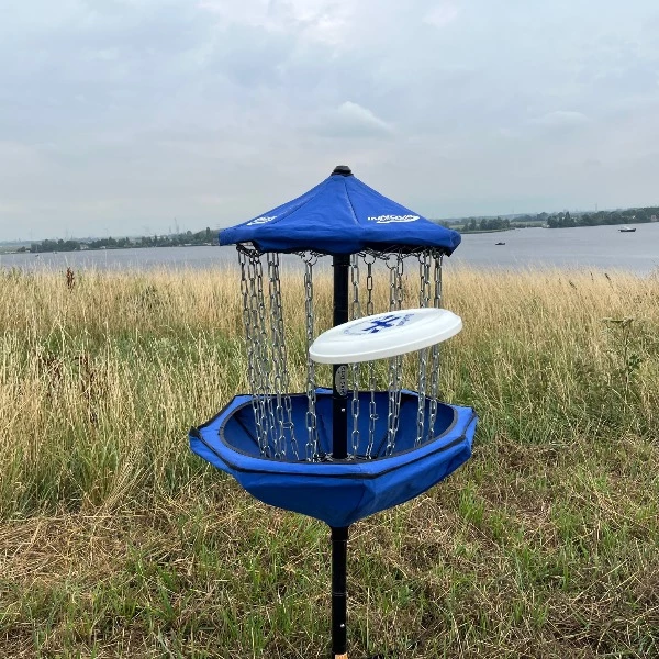Deze Disc Golf / Frisbee Golf set met 2 holes kan overal geplaatst worden. De officiële naam voor een hole is een polehole of target dit is een ronde mand op een standaard, boven de mand zijn loshangende kettingen aangebracht, die de disc / frisbee in de vlucht stoppen en in de mand doen belanden.