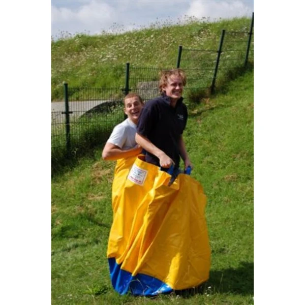 Probeer met 2 persoonen tegelijkertijd in deze duo loopzakken een parcours afteleggen.
