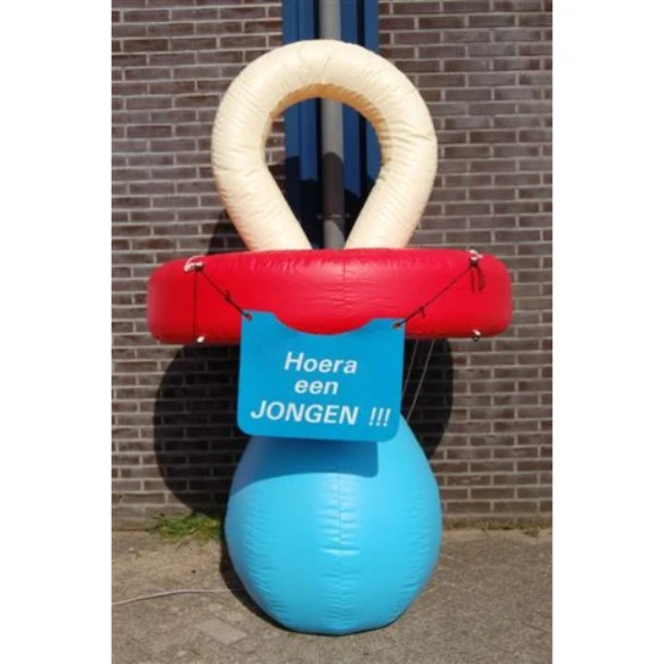 Leuk om deze reuze opblaasbare fopspeen blauw in uw tuin te plaatsen om de geboorte van uw zoon aan iedereen kenbaar te maken.