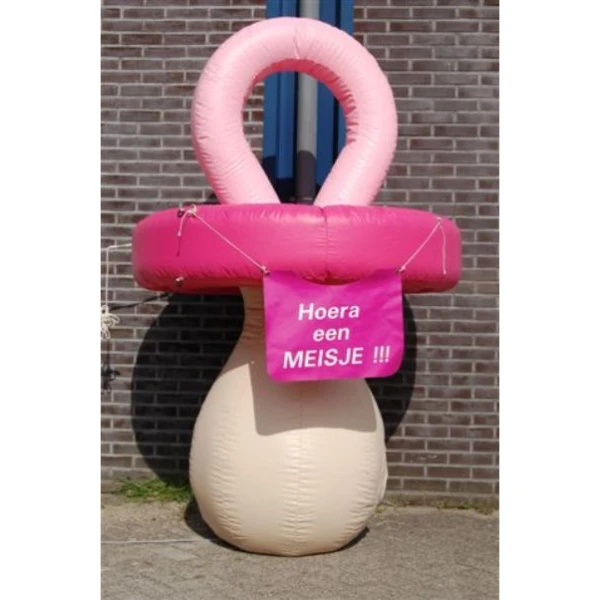 Leuk om deze reuze opblaasbare fopspeen roze in uw tuin te plaatsen om de geboorte van uw dochter aan iedereen kenbaar te maken.