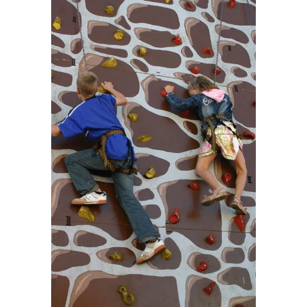 Onze mobiele klimwanden voldoen aan alle wettelijke gestelde veilgheidseisen en zijn alleen te huur inclusief twee instructeurs. Wij zekeren de deelnemers met een Petzl Grigri een zelfblokkerend zekeringsapparaat (dit principe vinden we ook terug bij autogordels) bij een plotselinge belasting knelt het touw af wat ervoor zorgt dat het geblokkeerd wordt. Door middel van een hendel kan de grigri weer gedeblokkeerd worden.