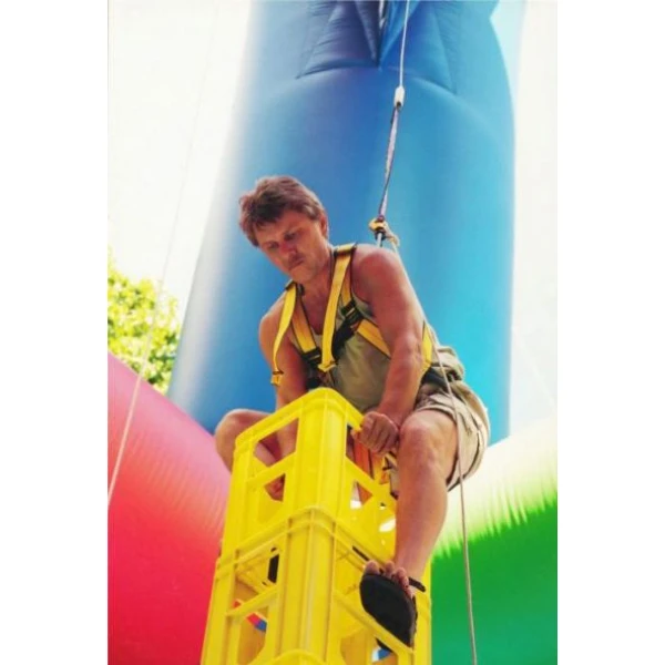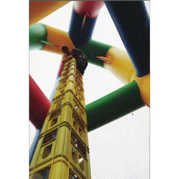 Deze spectaculaire kratklimtoren is maar liefst 13½ meter hoog en zal een ultieme uitdaging zijn voor evenwichtkunstenaars! al staande op één enkele krat, zal de klimmer hogerop proberen te komen. De aangegeven kratten moet hij zelf opstapelen, om ze vervolgens voorzichtig te beklimmen. En dan ineens is het evenwicht weg, de opgestapelde kratten vallen om, maar de deelnemer hangt veilig in een gordel en zal langzaam afdalen. Kratstapelen, wie stapelt tijdens uw evenement de meeste kratten?