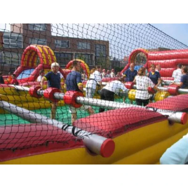 Dit levende tafelvoetbal spel wordt gespeeld met 2 teams van elk 6 personen. Iedere speler heeft een vaste positie in het veld. Voor een goed resultaat is de samenwerking van groot belang. Deze attractie doet het erg goed tijdens een personeelsfeestje of een zeskamp, het maakt namelijk niet echt uit of je kan voetballen of niet.