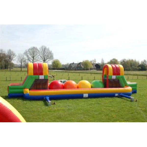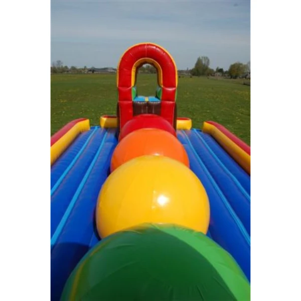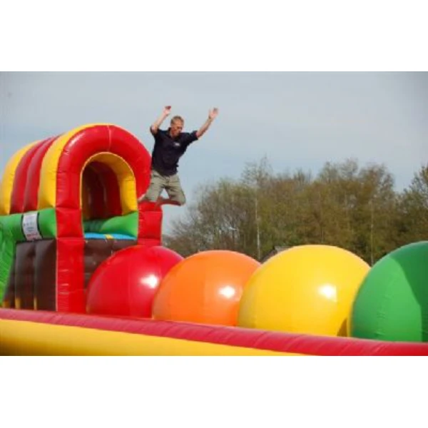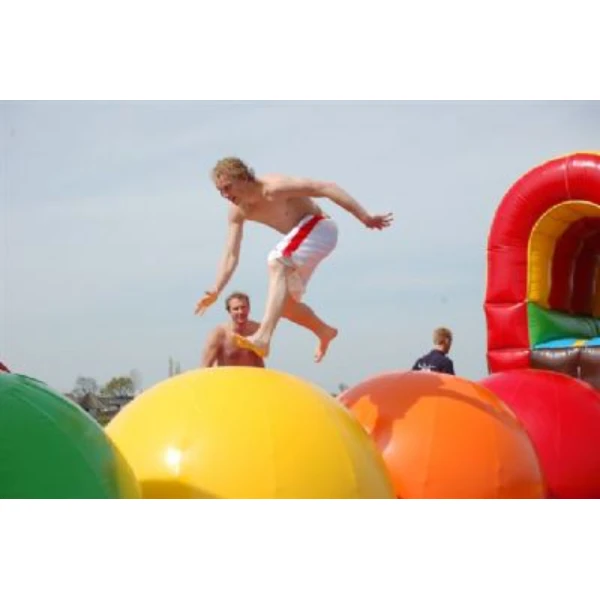 Mega Bouncing Balls is een unieke nieuwe attractie. Probeer zo snel mogelijk al springend over de mega stuiterballen naar de andere kant te komen, spectakel gegarandeerd! Wie weet zich als snelst over deze spectaculaire "Mega Bouncing Balls Parcours" de overkant te bereiken zonder van de mega stuiterballen af te glijden.