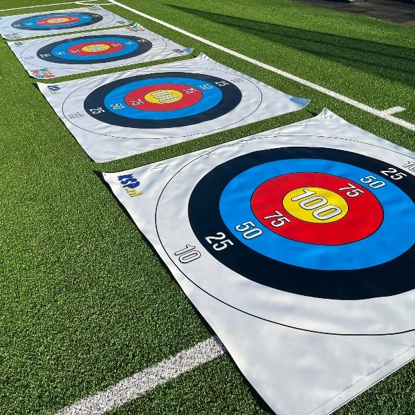 Gooi met een frisbee van een afstand naar de Mega Frisbee Target XXL met als doel de frisbees op de grote mega target doek te laten landen. Punten worden gescoord afhankelijk van in welke ring de frisbee landt, als de frisbee in de roos van de target komt scoor je direct al 100 punten. Leuke afwisselende activiteit zeer geschikt als zeskamp, sport en spel onderdeel of voor een activiteiten dag.