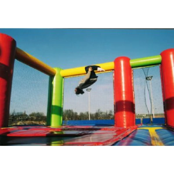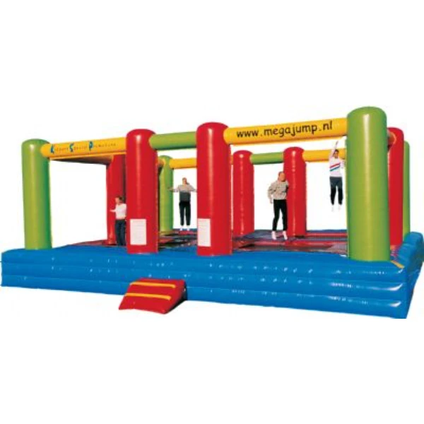 De megajump is een door ons zelf ontwikkelde attractie. Hij bestaat uit een uniek veiligheidskussen met vier ingebouwde trampolines. Doordat er op de trampoline gesprongen wordt, kunnen er zeer hoge sprongen gemaakt worden. Dit maakt de megajump tot een ultieme uitdaging voor elke deelnemer. De toeschouwers kunnen aan alle kanten van de megjump genieten van de springkunsten van de deelnemers.