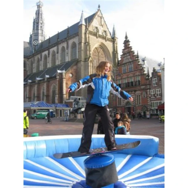 Deze snowboard simulator maakt echte snowboard bewegingen en is geschikt voor zowel kinderen als volwassenen. De snelheid (beweging) van deze snowboardsimulator kan gemakkelijk ingesteld worden, zodat het voor elke deelnemer een uitdaging is en blijft. Als je van de snowboard afvalt kom je zacht terecht op een opblaasbaar valkussen.