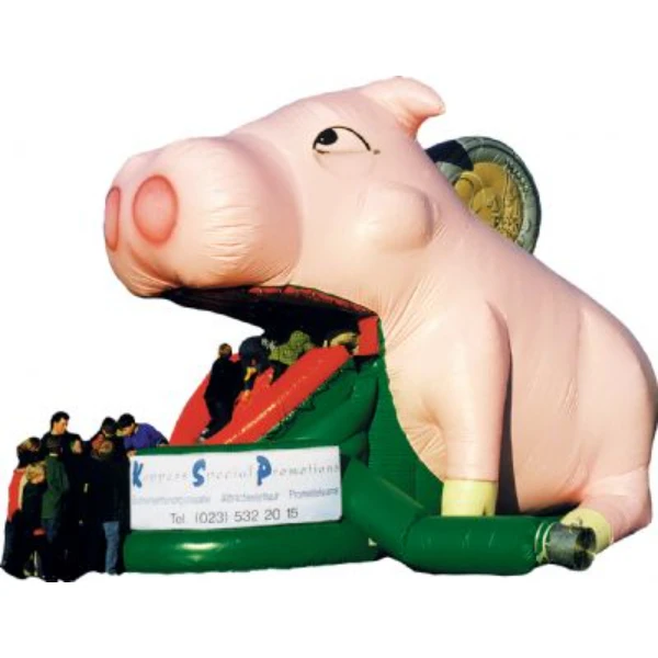 Het spaarvarken met een klim en glijbaan is bij de kinderen ontzettend populair. In de bewegende bek worden zij 'opgegeten' vervolgens glijden zij door het lichaam van het varken naar beneden. Mede door de afmetingen en de unieke uitstraling zijn deze spannende attracties grote publiekstrekkers en uitstekende reclame en/of sponsorobjecten.