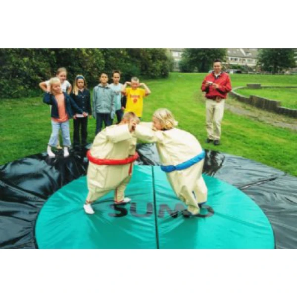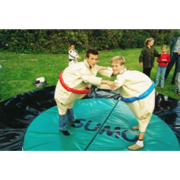 In deze junior (kinder) sumopakken voelen de deelnemers zich echte oosterse sumo worstelaars. De moeilijkheid van het spel is om je evenwicht te bewaren en al worstelend je tegenstander op de mat te werken.