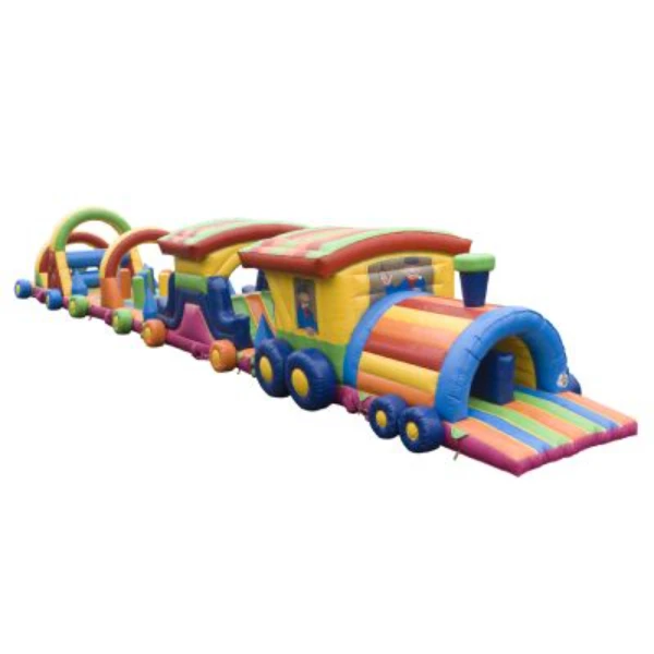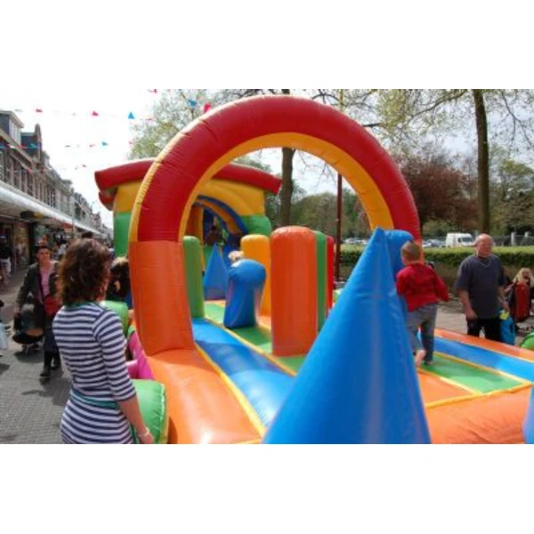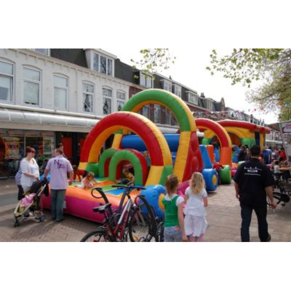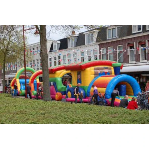 Deze unieke 26 meter lange super hindernisbaan als trein heeft een locomotief waar de kinderen doorheen kunnen en nog 3 speelwagons. Zal deze mooie opvallende speeltrein stoppen in jou dorp, plaats of stad en de kinderen op je evenement vermaken?