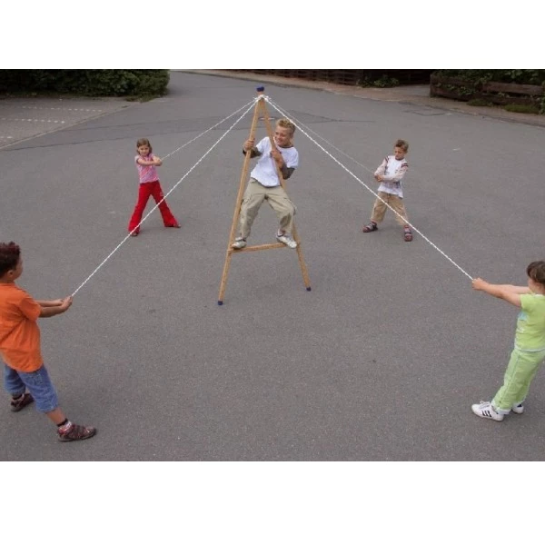 Probeer met je team deze grote A met 1 persoon in het midden van de A in evenwicht te houden door aan de touwen te trekken of juist te laten vieren probeer je de A te laten “wandelen”. Met als doel de persoon in het midden van de A van a naar b te wandelen zonder dat deze met zijn voeten de grond raakt, het team dat als eerste een parcours heeft afgelegd is de winnaar. Een goede samenwerking is de basis van een goed resultaat, wij verhuren de Wandelende A kinderen als een set van 2 stuks.