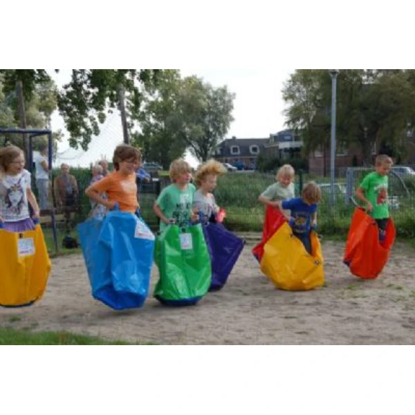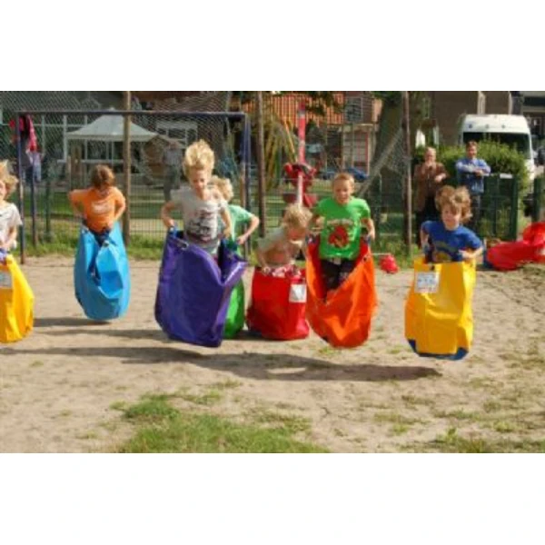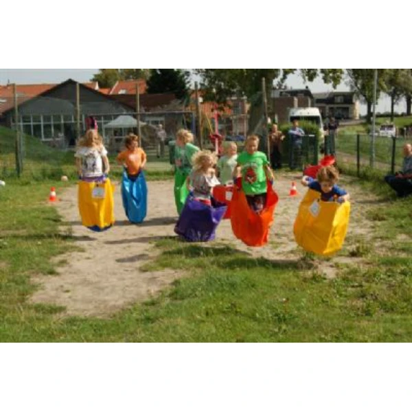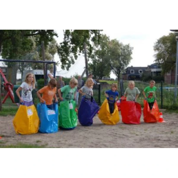 Probeer met 6 persoons tegelijkertijd in deze kinder loopzakken een parcours afteleggen.