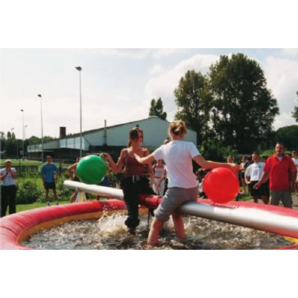 Zittend op een balk boven het water proberen de deelnemers elkaar met een kleine skippybal uit evenwicht te brengen en droge voeten te behouden. Het zwembad is tevens verkrijgbaar met 3 draaiende cilinders, de deelnemers moeten dan proberen om droog de overkant te halen.